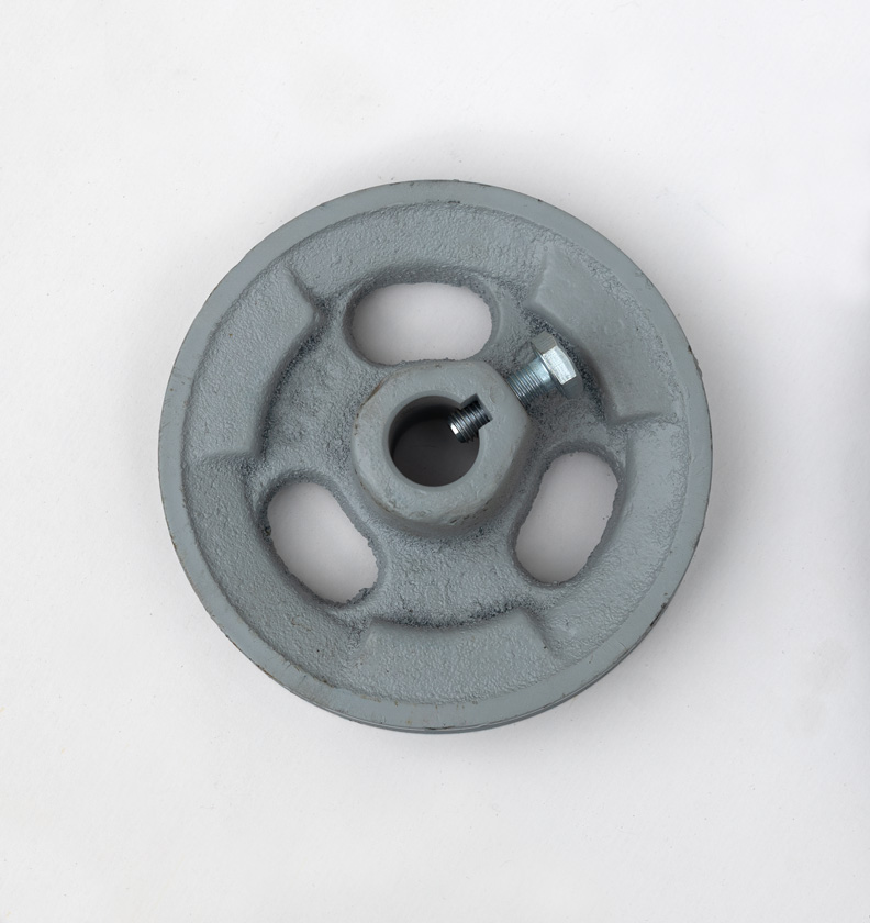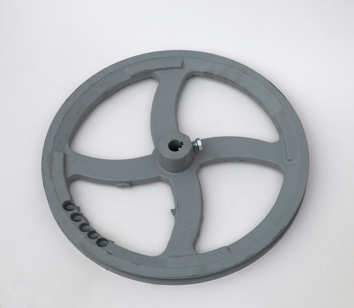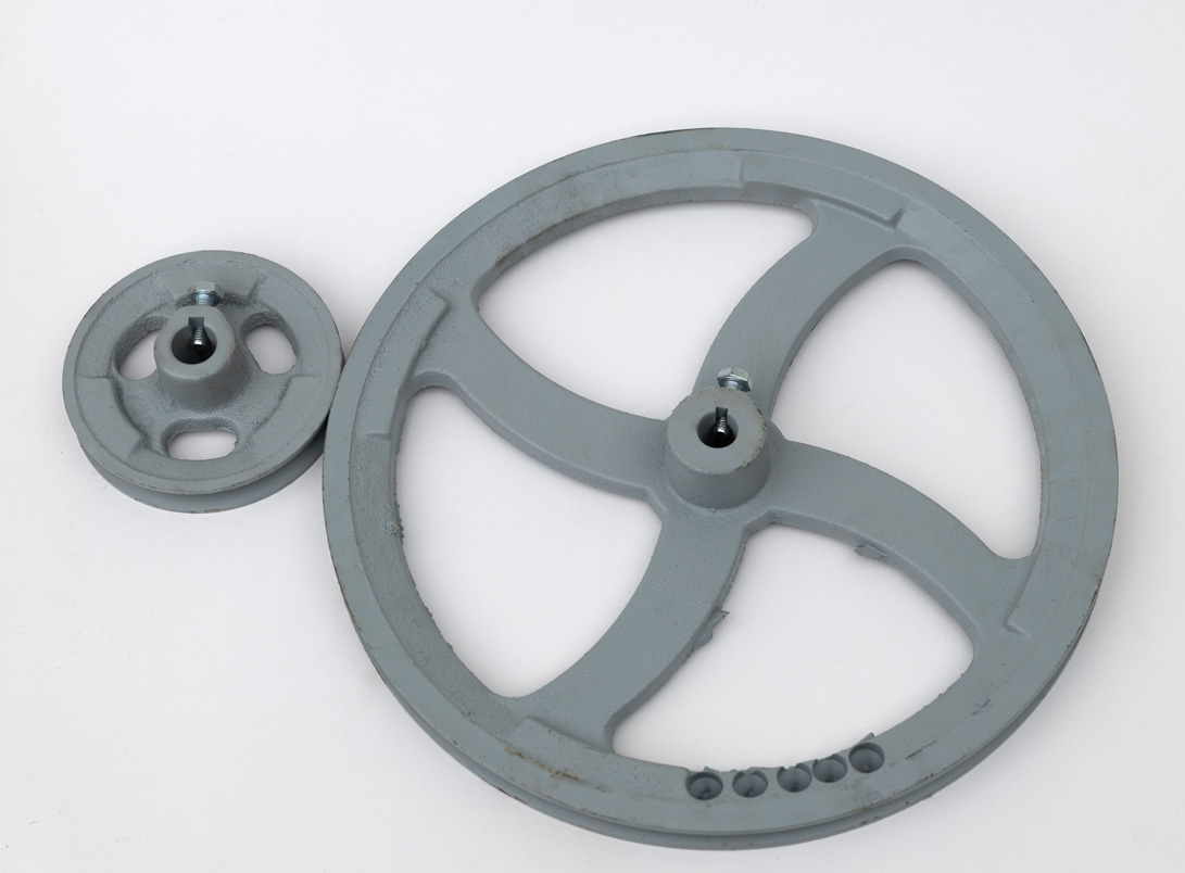 Шкив опоры вентилятора (чугун, 408 мм), Шкив для электродвигателя 1000 об/мин (Чугун, 130 мм).